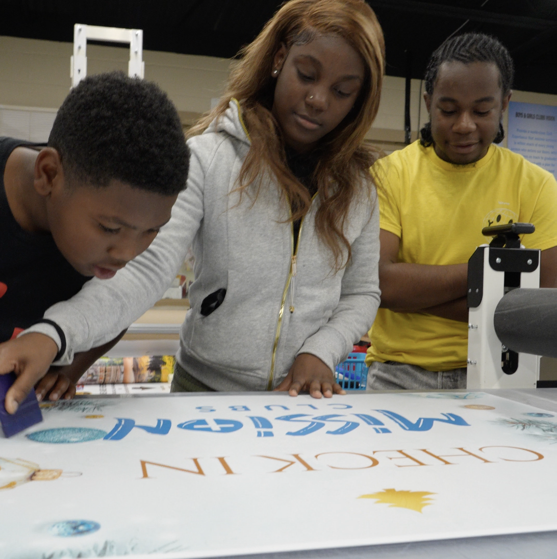 BGC Print serves as a structured workforce readiness program where Teen Club members gain hands-on experience in a real business environment. Working side by side with industry mentors, teens are supported through every stage of the process, including design and production, customer service, quality control, and order fulfillment.